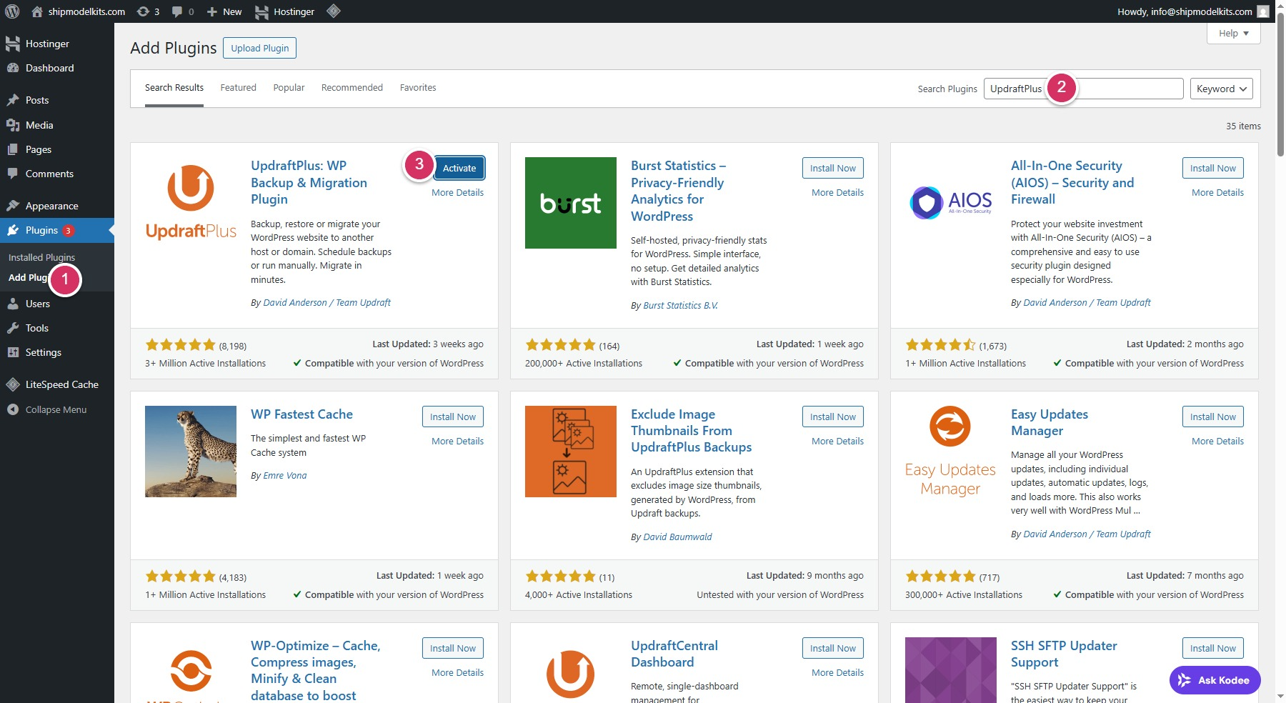 3. Installing UpdraftPlus Plugin