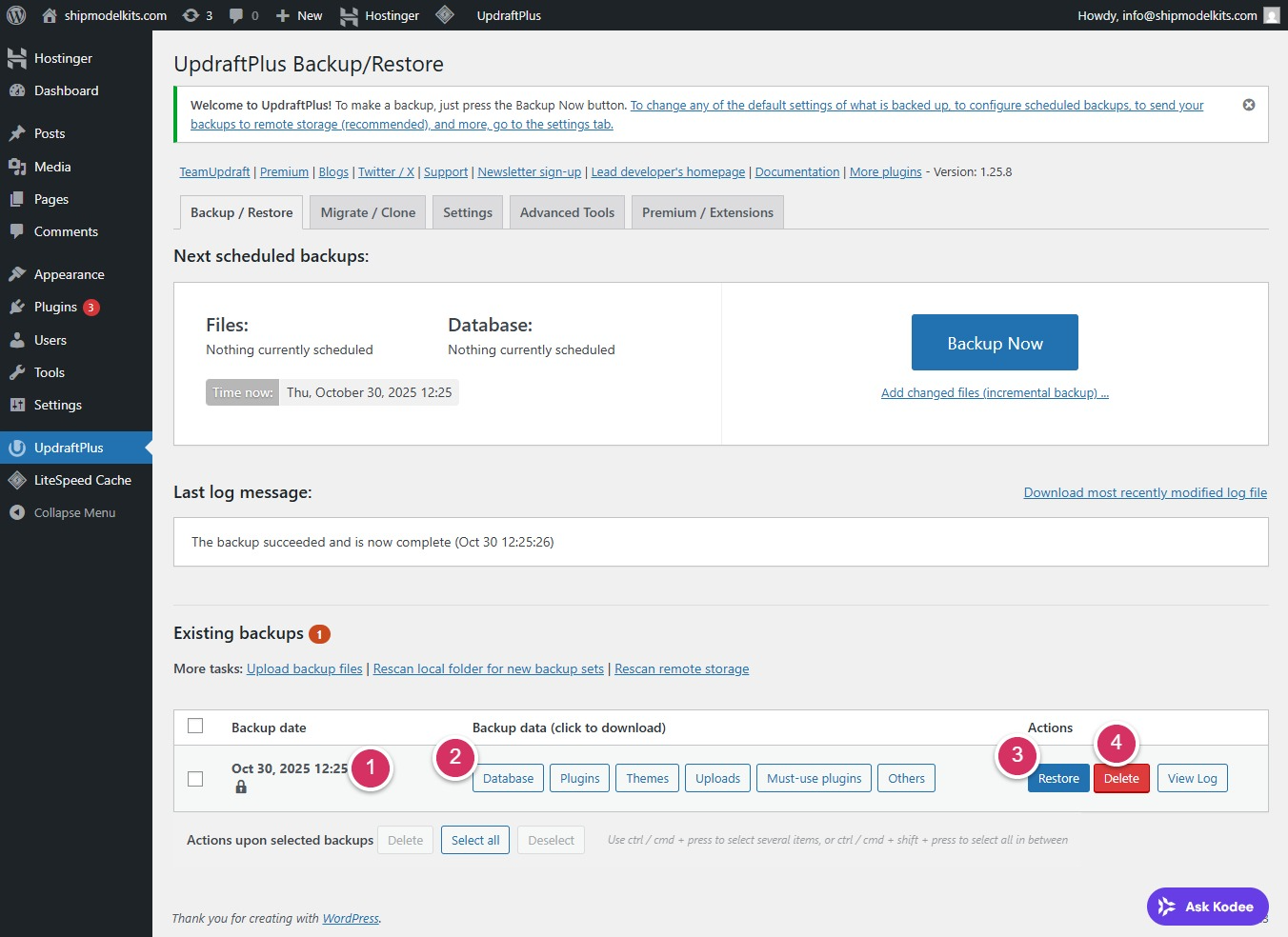 You’ll now be in the UpdraftPlus Backup/Restore page.